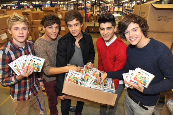 The British boyband signed copies of "Up All Night"at the Marston Gate Fulfilment Centre